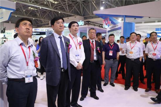 (中国高等教育学会第七届理事会会长杜玉波,重庆市政府副市长屈谦,第十届全国人大常委委员柳斌,中国关心下一代工作委员会副主任田淑兰一行视察展会现场)